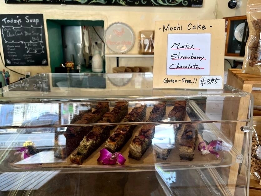 ちなみにこの日カウンターに並んでいたもちケーキのフレーバーは、抹茶ストロベリーチョコレートでした。次回はデザート目的で訪問せねば!