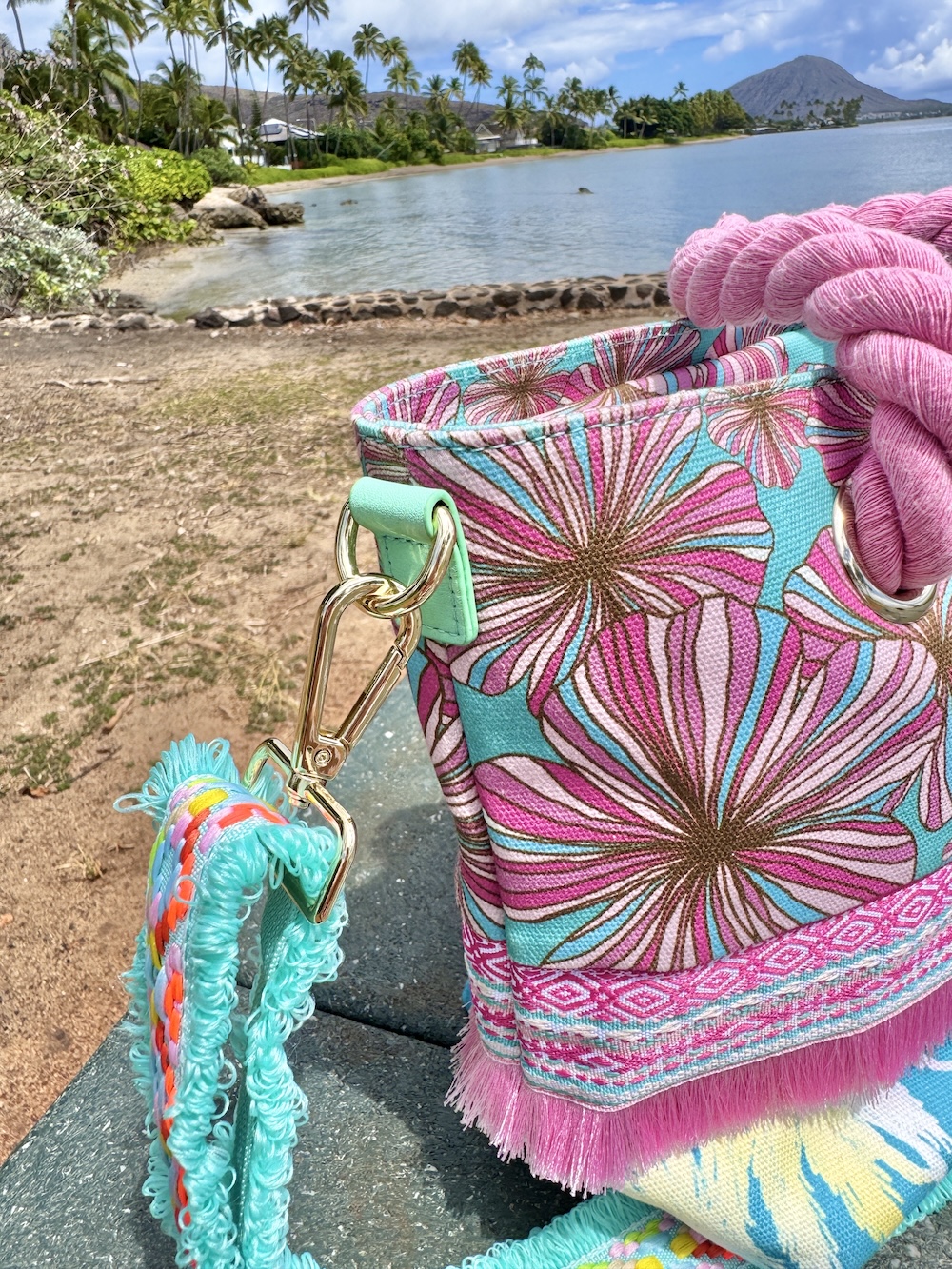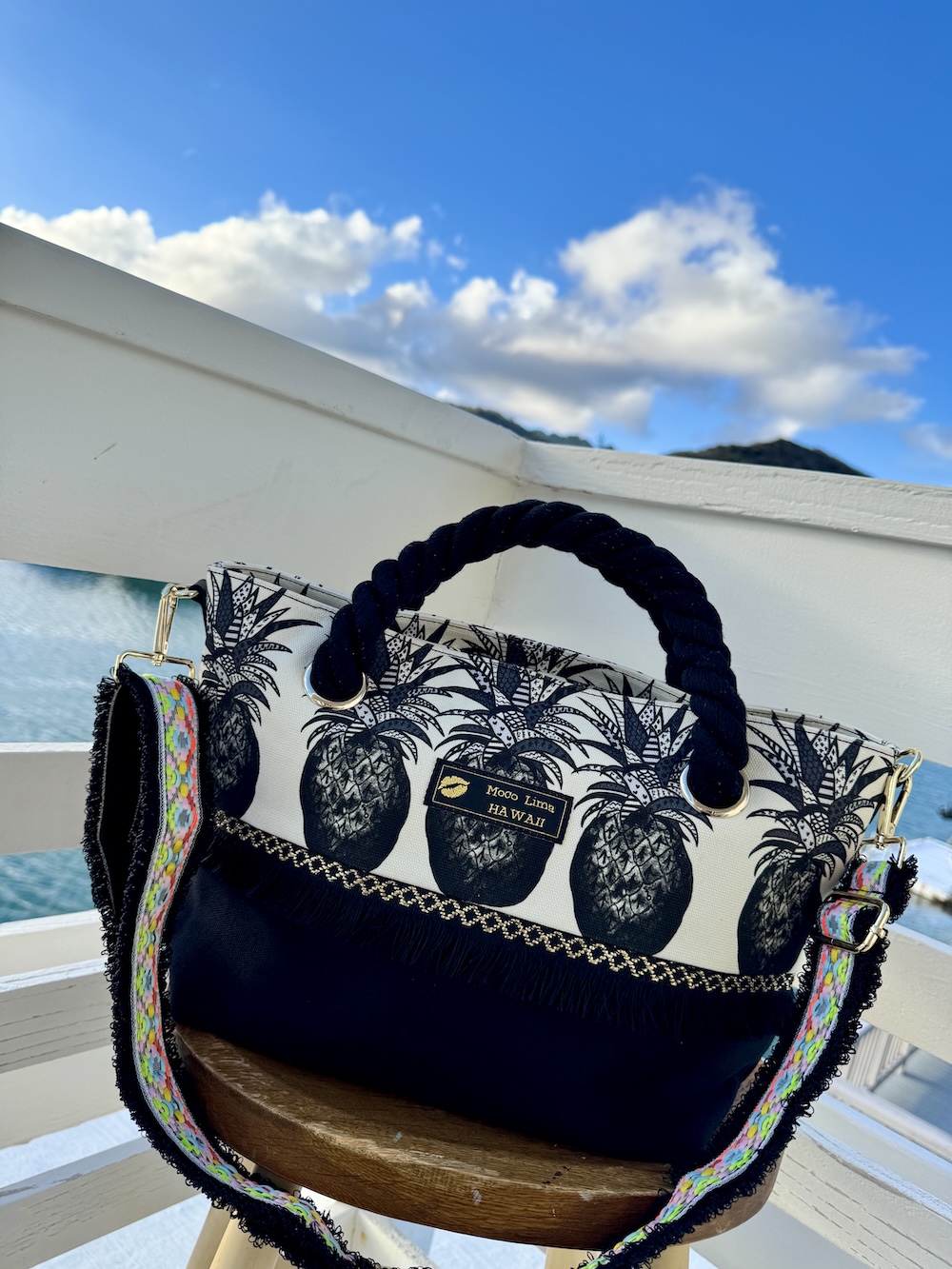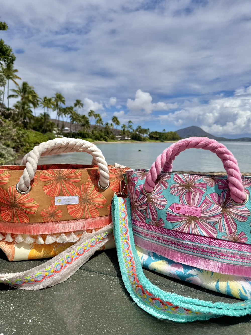 ハワイでひとつひとつ手作りされているモコリマハワイのバッグ。オーナー/デザイナーのMOCOさんが、ハワイで感じた感動やワクワクをデザインに込めた、世界に二つとない特別なアイテムです。