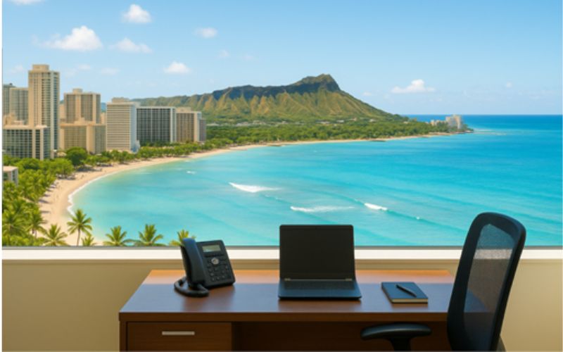 日常のワンシーンを想像してみてください。心地よい風が吹くビーチ沿いのカフェでノートパソコンを開き、仕事を進める。そんな働き方が現実になるのが、ハワイでの起業なんです。