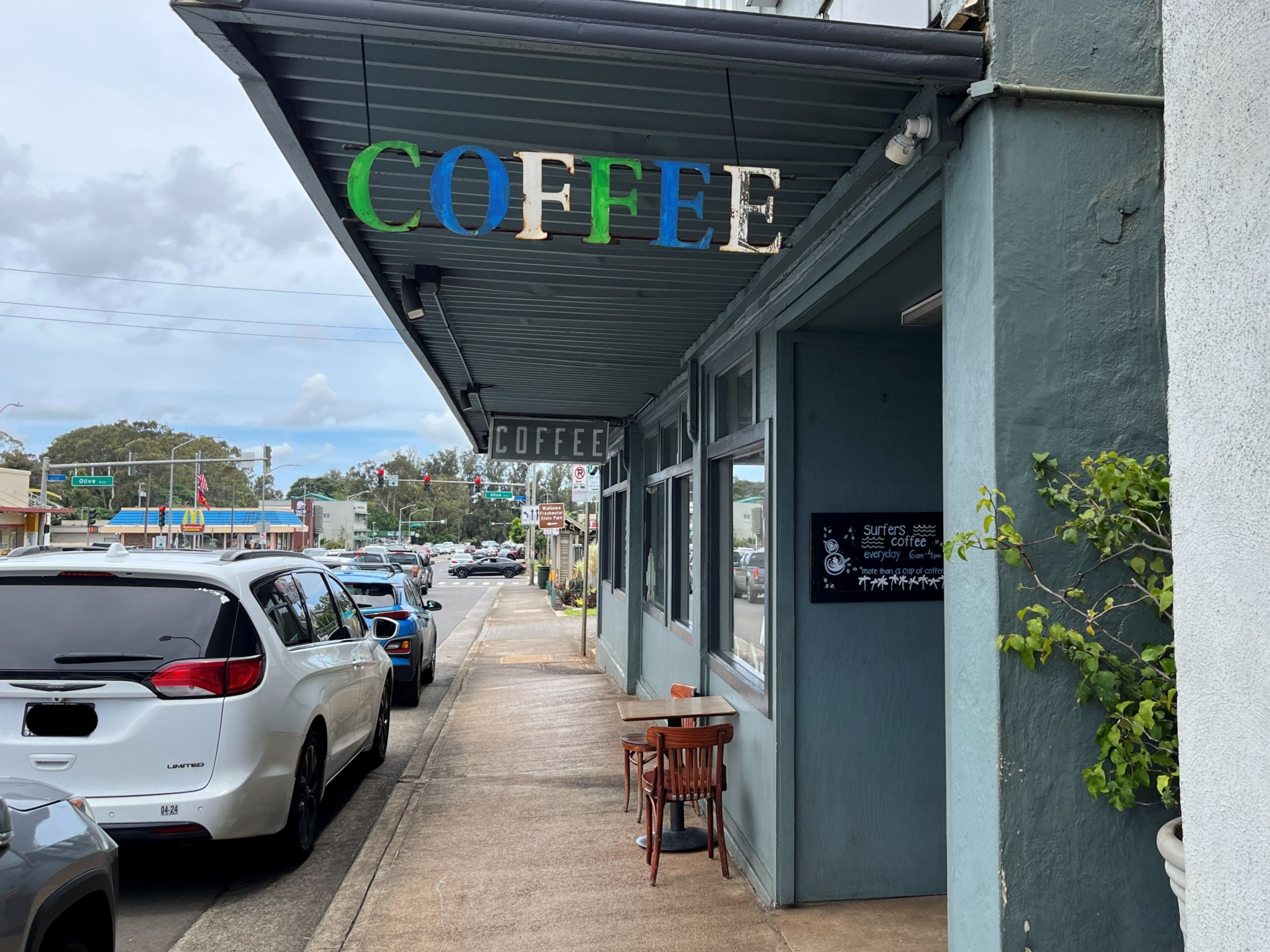 ワヒアワ地区にある、ローカルでいつも賑わうカフェ「サーファーズ・コーヒー(Surfers Coffee)」。