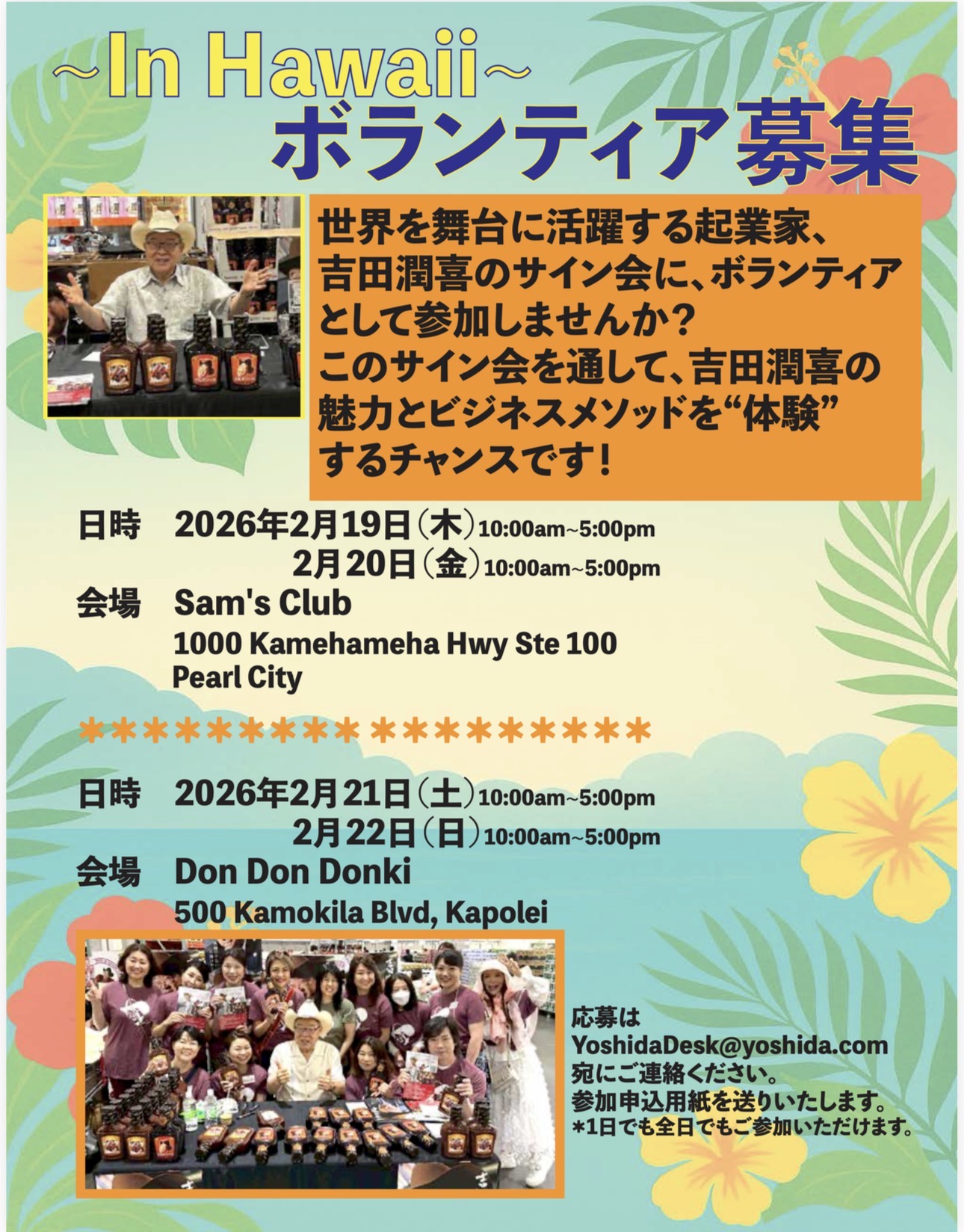 ハワイで開催!世界的起業家吉田潤喜氏のサイン会ボランティア募集のご案内