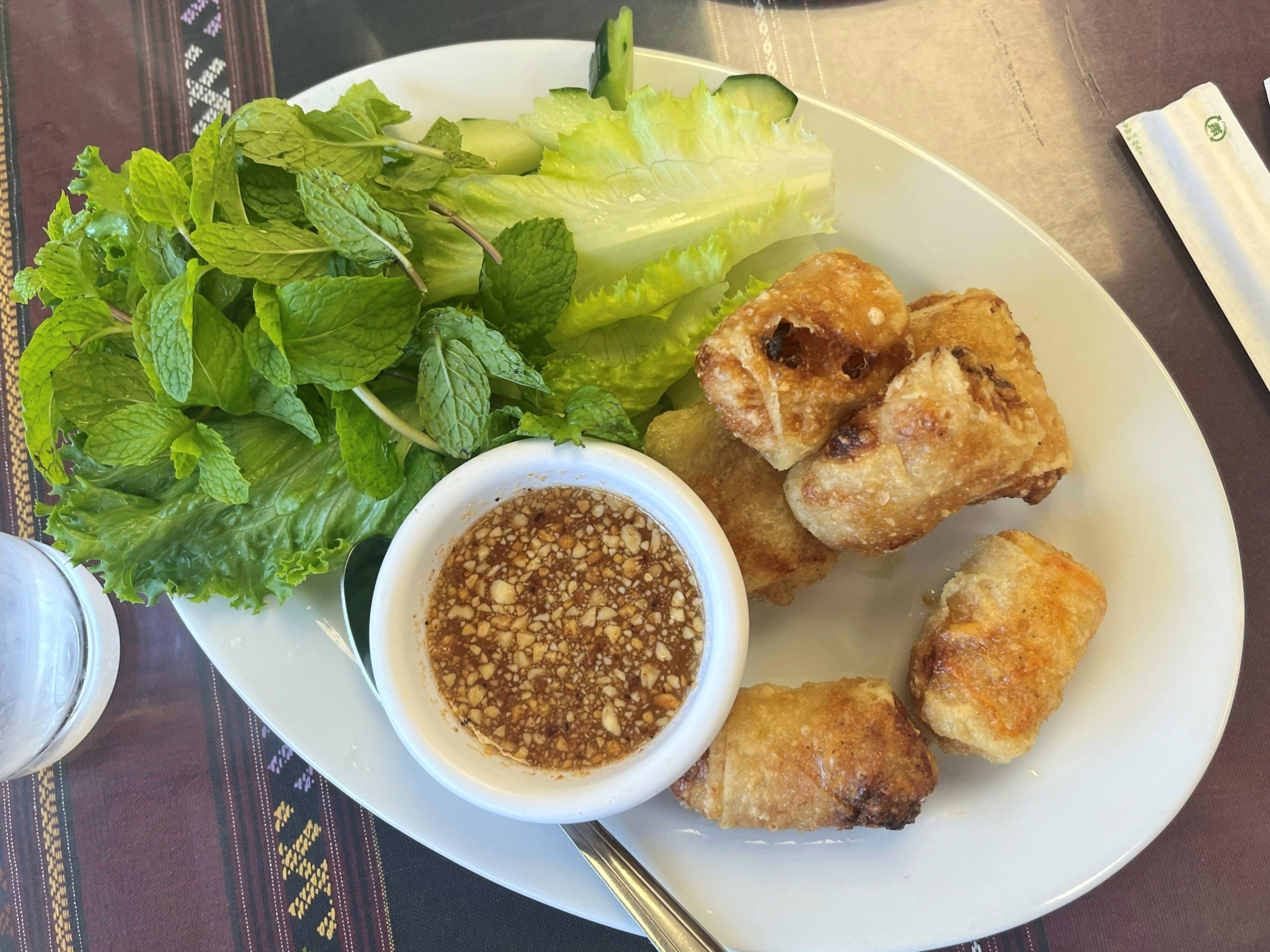 タイ料理には欠かせないのが、スプリングロール。お店によって皮や具材、味付けが異なりますが、ここのはかなりタイプで毎回オーダーしています。